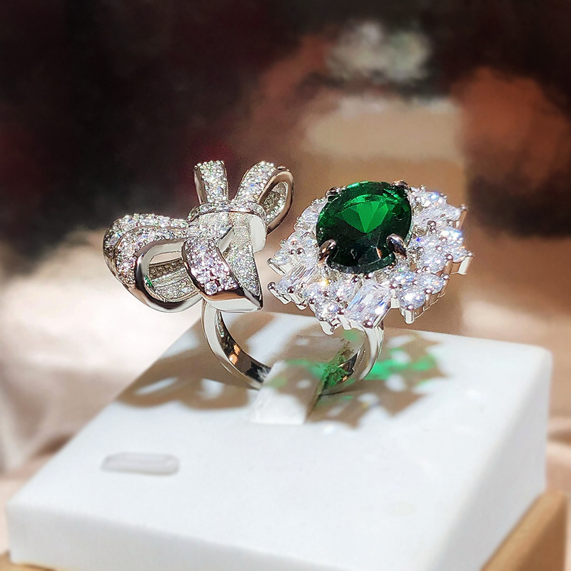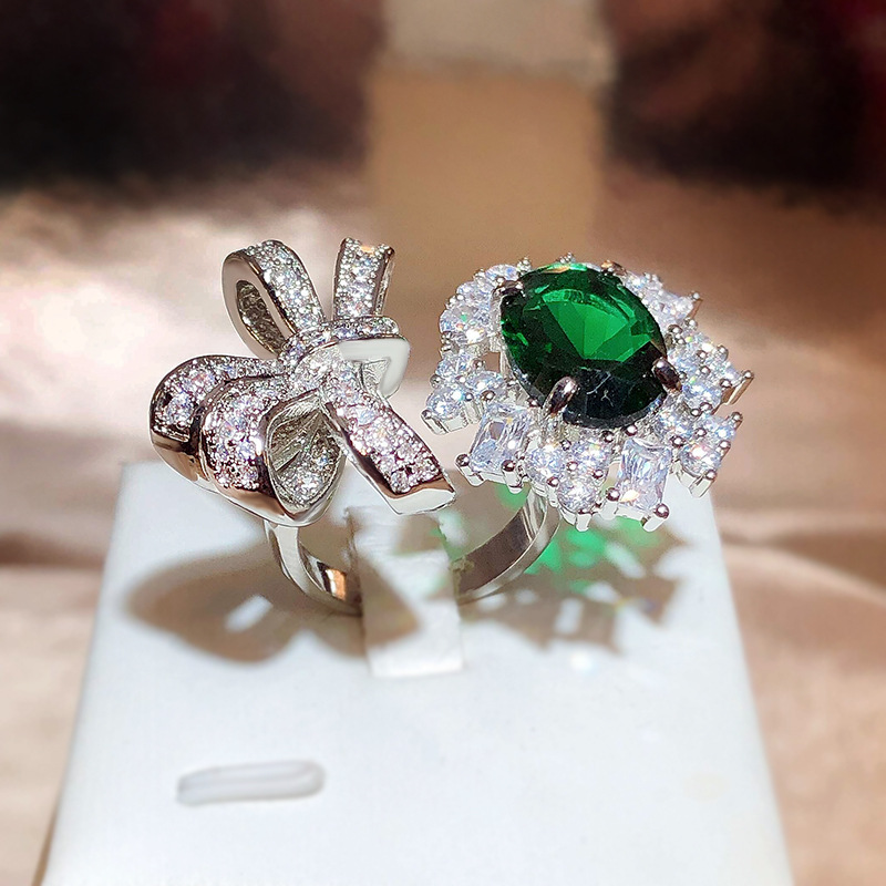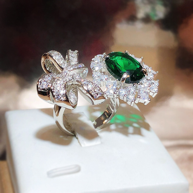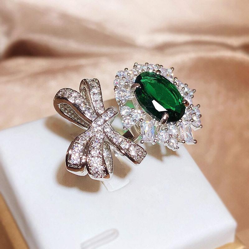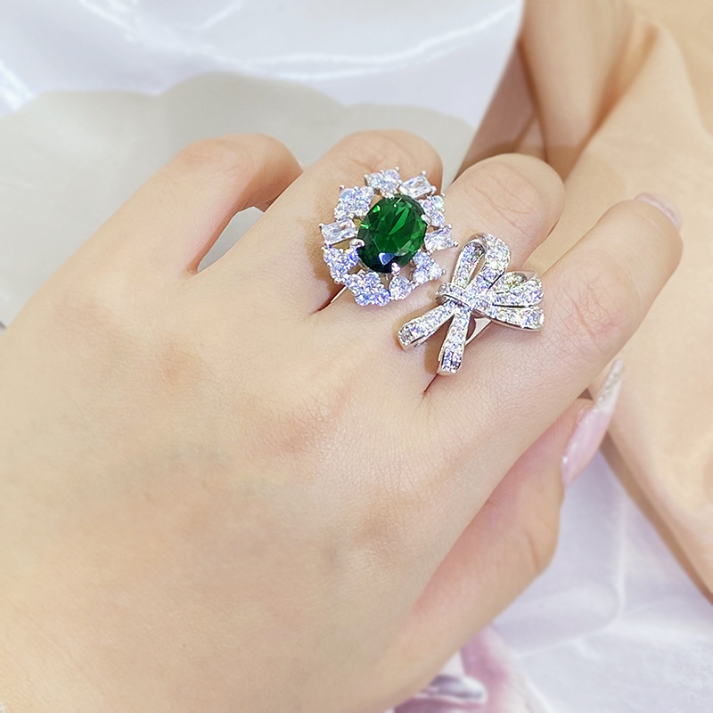 Fashion Trend Emerald Ring With Gemstone Harbor Style Retro Girls Open Index Finger Ring Simple Accessory