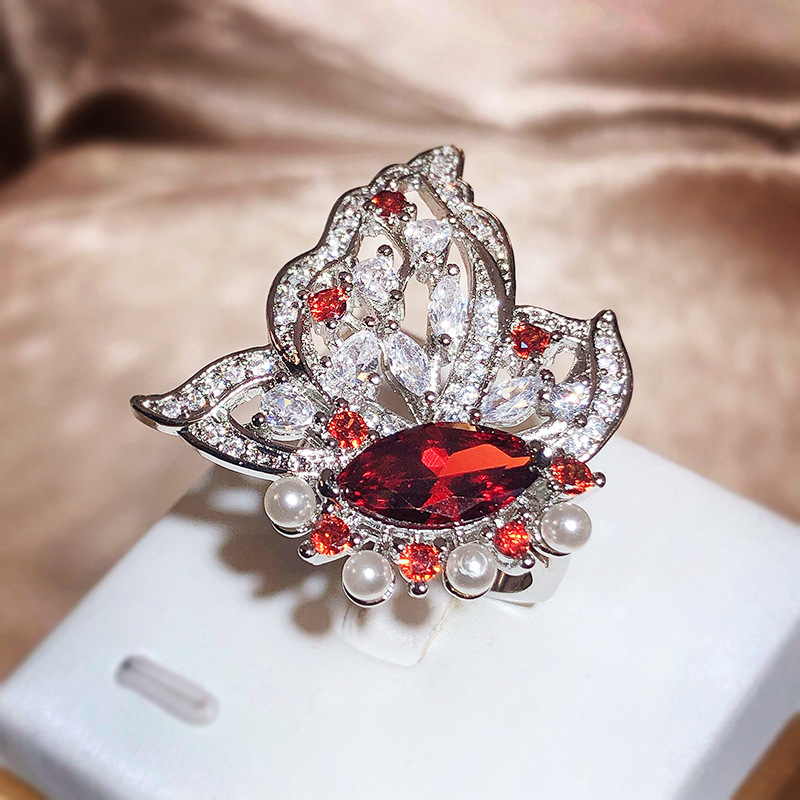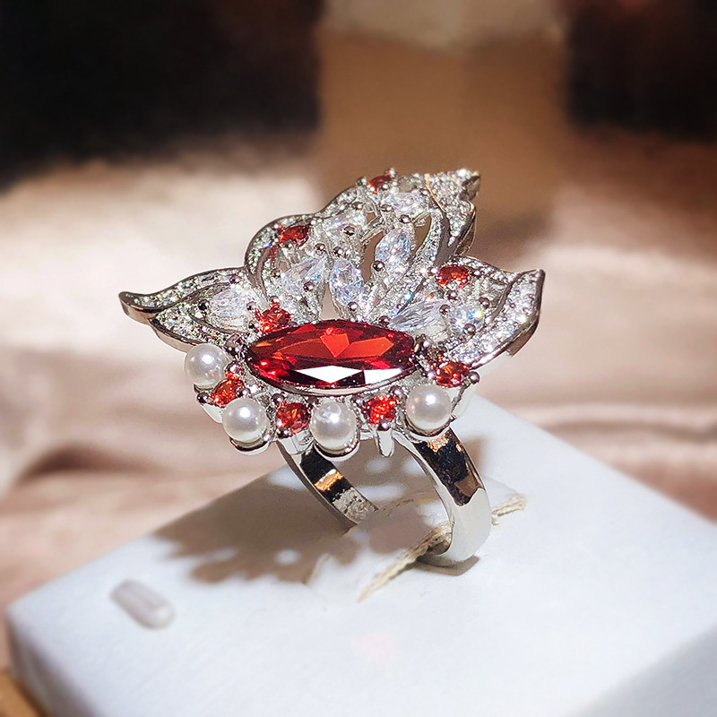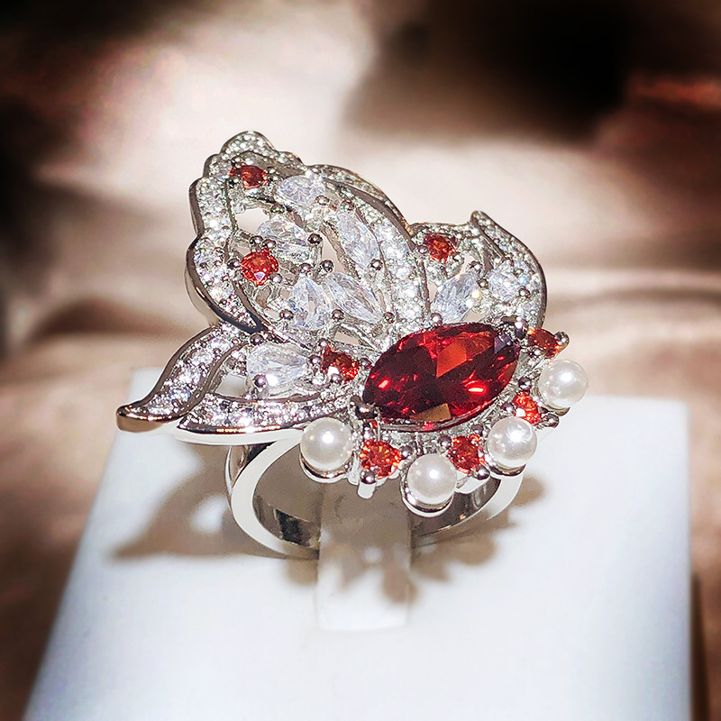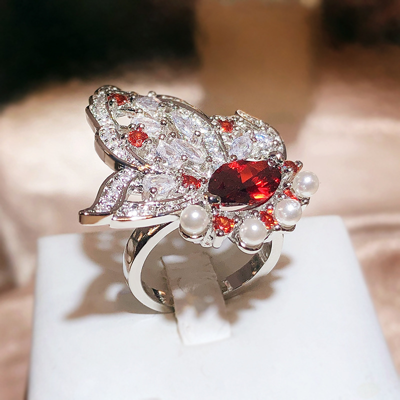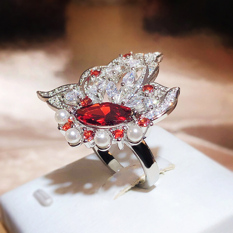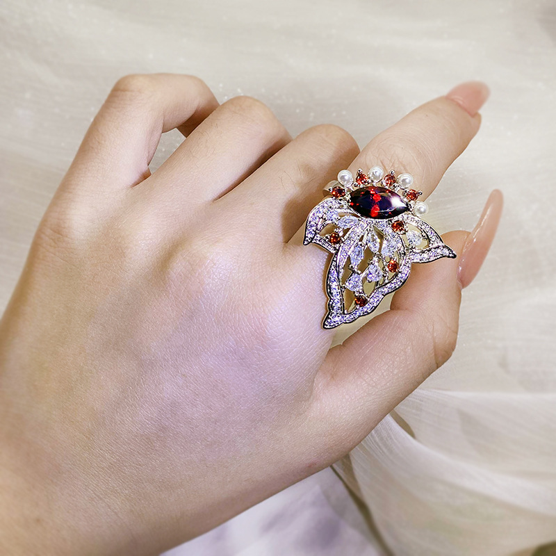 Small Red Book Recommended Senior Full Diamond Love Shaped Flower Ring Luxury Flower Ring Simulation Tanzanite Open Ring For Women
