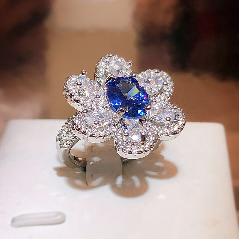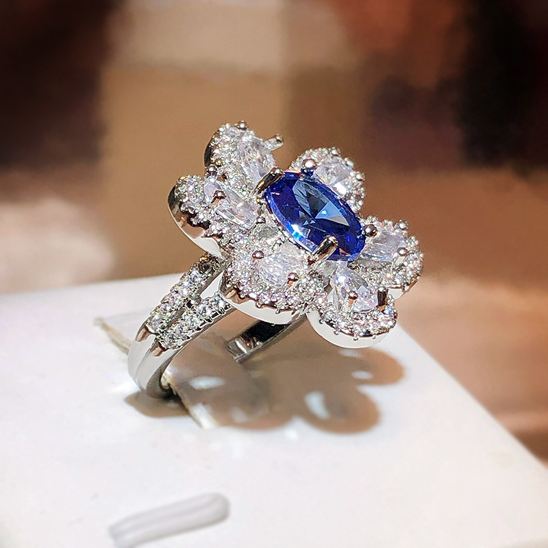 Super Flash Treasure Light Luxury High Sense Of Sapphire Ring Female Opening Ins Tide Cold Atmosphere All Matching Food Ring